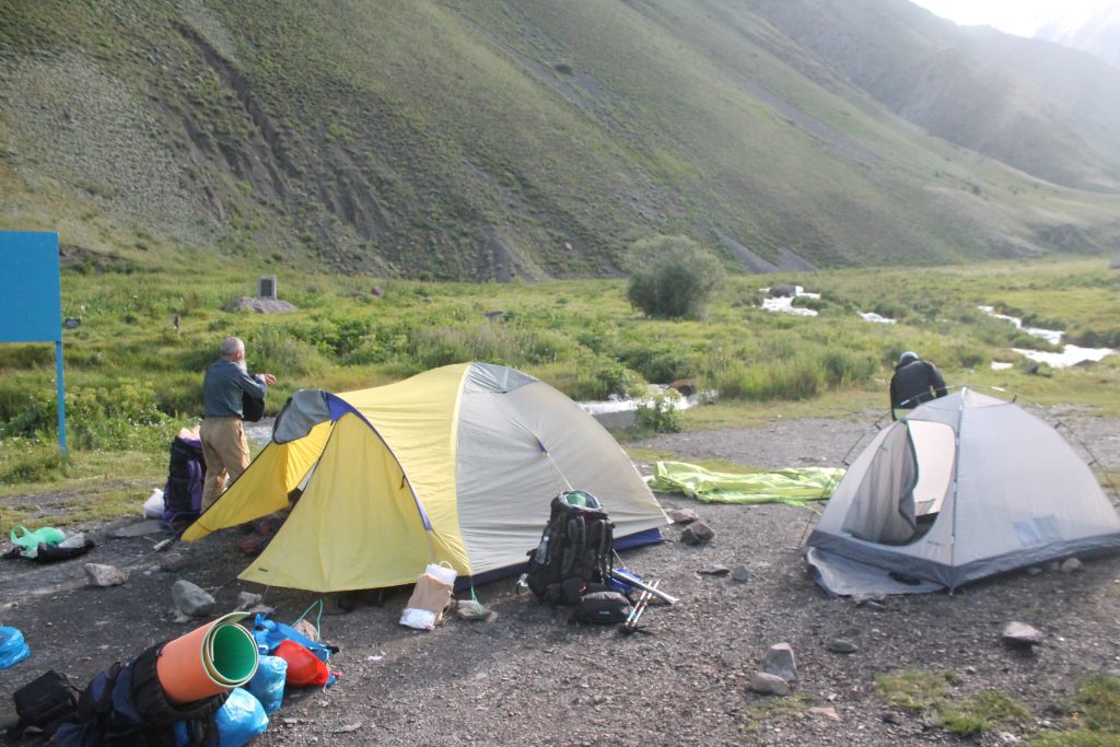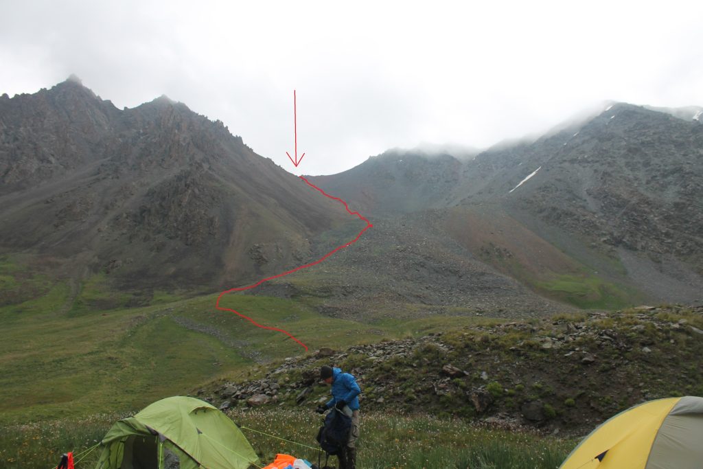 Подъем в 6:00. Позавтракали, дождь не переставал, поэтому мы остались в палатках пережидать непогоду. Иногда в перерыве дождя видна наша цель — перевал Джарташ, мы стоим прямо под перевалом.