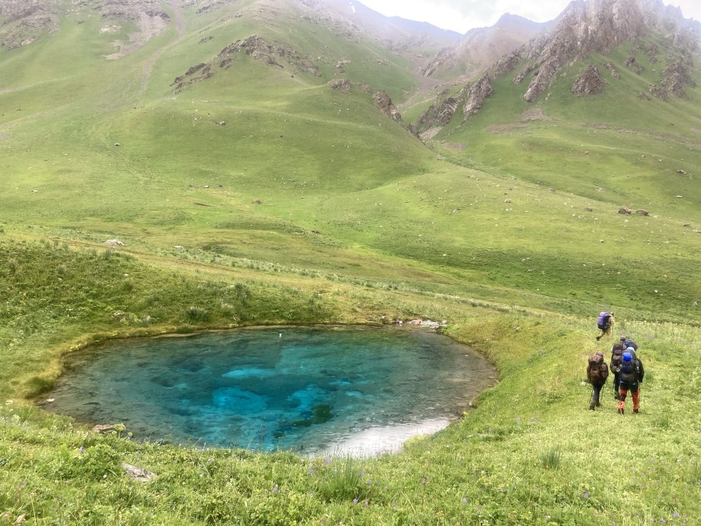 В 18:00 вышли к небольшому озеру, которое находится как раз напротив подъёма на перевал Джарташ. В это время пошёл дождь, и мы стали на ночлег.