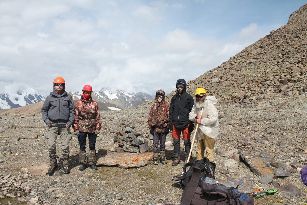 Иногда над ледником разносится пронзительный писк. Это кричит пищуха — маленький зверёк, похожий на хомяка. Вскоре мы увидели его самого, копошащегося между камней. Сфотографировать его он не дался и убежал в своё укрытие.
