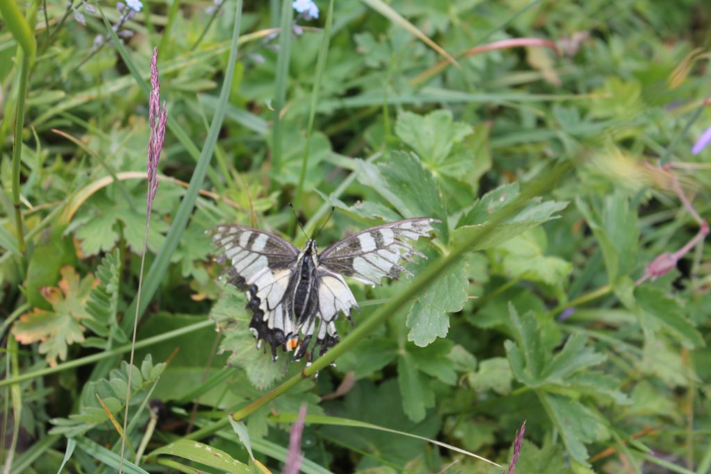 Здесь мы увидели красавицу — бабочку махаон. Она сидела на травке и не пыталась улетать, позируя перед моим фотоаппаратом.