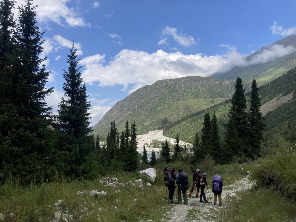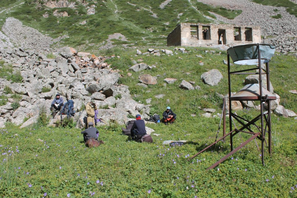Приготовили завтрак, поели, сложились и в 9:00 вышли на маршрут. Мы не дошли до альплагеря Ала-Арча 12 километров, и за этот день нам предстояло пройти это расстояние. Снова вышли на старую трейловую дорогу. Через 40 минут движения вышли к заброшенной метеостанции.