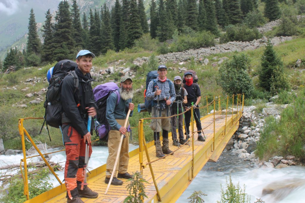 В 13:30 вышли к стационарному железному мосту через реку Ала-Арча. Здесь находилось уже много людей.