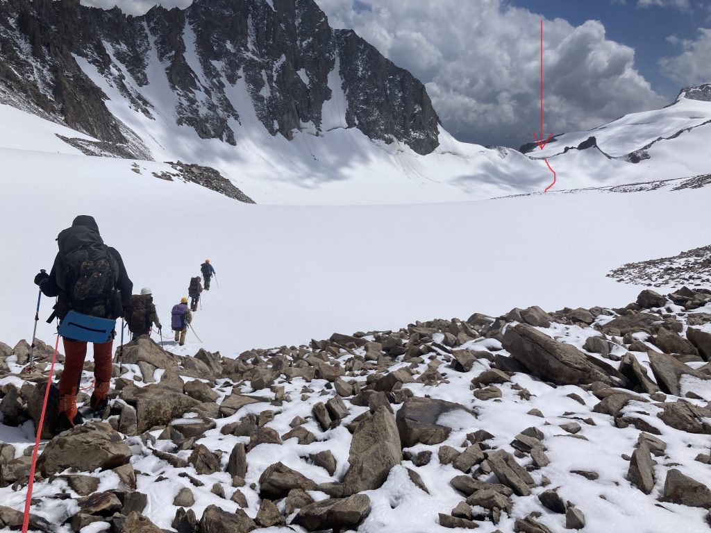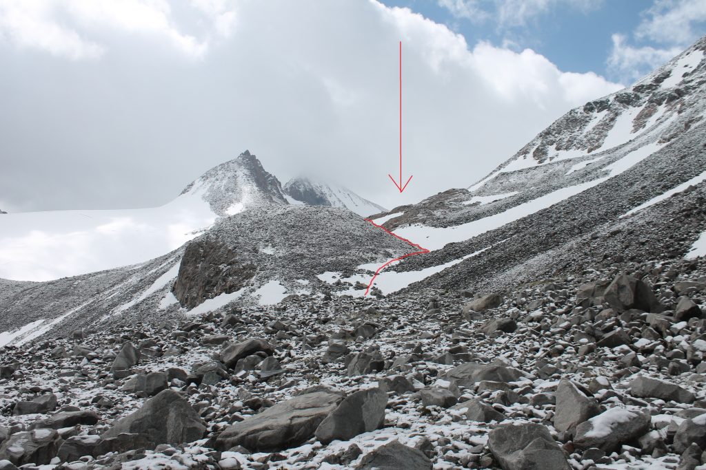 С перевала Проходной прекрасно виден наш следующий перевал Широкий (1А, 3880) в виде просторного снежного склона.