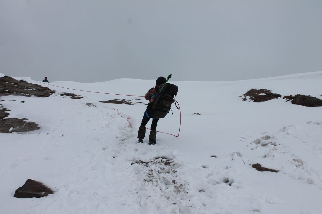 Этот момент был психологически сложным. Выпавший снег не добавлял оптимизма, и перед нами стал выбор: или возвращаться вниз и терять поход, или продолжить движение по маршруту. Для того, чтобы решение было принято не только руководителем, я сделал опрос. Все решили идти вперёд.