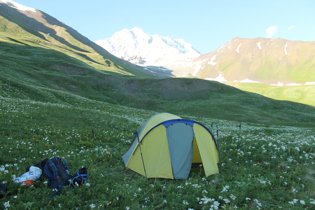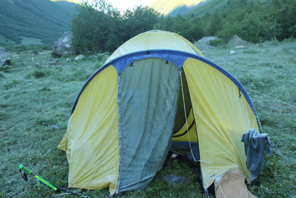В перерыве дождя быстро собрались и сделали бросок на расстояние примерно 1 километр по бездорожью вверх вдоль реки Ласдилишеле, подойдя к перевалу Вахушти-4. Здесь под возобновившемся дождём поставили палатку и остановились на ночлег. Ужинать уже даже не хотелось, поэтому слегка перекусили сухофруктами и отправились спать.