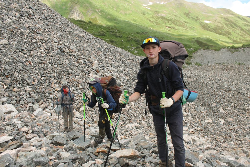 Подъем в 6:00. Позавтракали, сложили палатки, надели каски. В 9:00 вышли на маршрут и направились вверх по направлению перевала Каретта (1А, 3033).