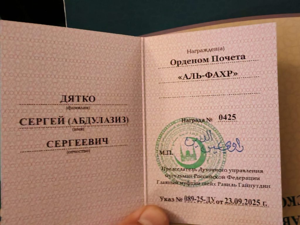 Также на Пленуме за многолетний плодотворный труд, за заслуги по укреплению и развитию мусульманской Уммы Республики Карелия, за активное участие в осуществлении программ, направленных на сохранение и развитие духовно — нравственных и культурных ценностей Ислама шейх АбдулАзиз был награждён орденом почёта «Аль Фахр».