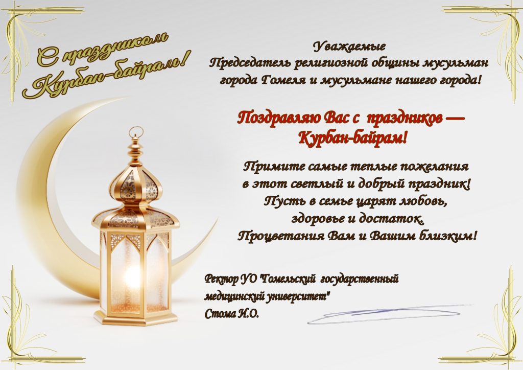 С праздником Курбан – Байрам, мусульман г. Гомеля, поздравил Ректор УО «Гомельского государственного медицинского университета», д.м.н., профессор – Стома Игорь Олегович